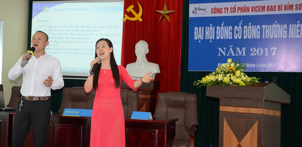 Ngày 26/4/2017 tại hội sở chính Công ty cổ phần Vicem bao bì Bỉm Sơn đã diễn ra với sự có mặt của hơn 100 cổ đông sở hữu và ủy quyền tham dự cùng các khách mời là Lãnh đạo Tổng công ty công nghiệp Xi Măng Việt Nam và các khách hàng đối tác của Công ty.