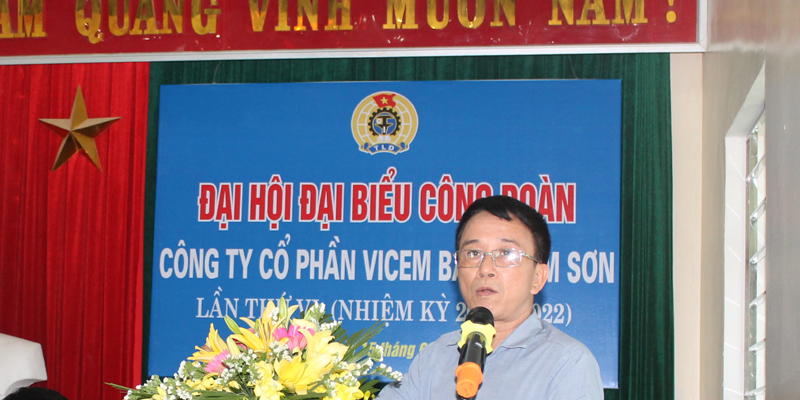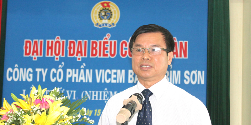 Ông: Phạm Minh Đức. Chủ tịch công đoàn Tổng công ty công nghiệp xi măng Việt Nam đóng góp ý kiến chỉ đạo về phát huy vai trò làm chủ của người lao động.